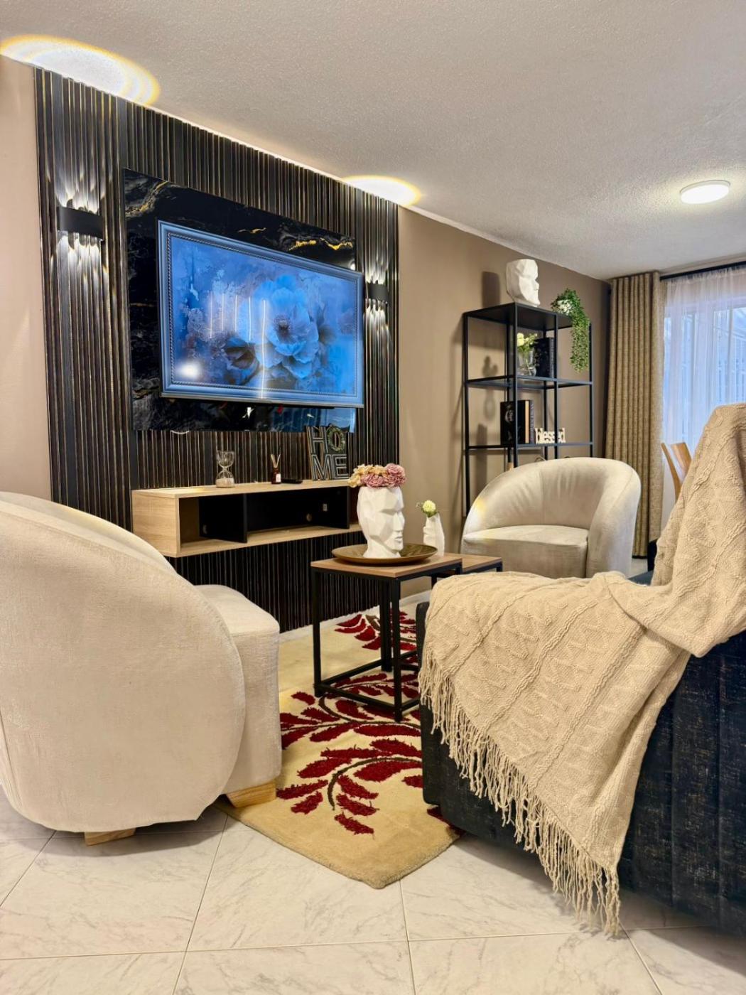 Three-Bedroom Apartment. This spacious apartment consists of 1 living room, 2 separate bedrooms and 1 bathroom with a shower and free toiletries. The kitchen is equipped with a refrigerator, kitchenware and a tea and coffee maker. This apartment features a washing machine, a private entrance, flat-screen TV with streaming services, as well as chocolate for guests. The unit offers 4 beds.