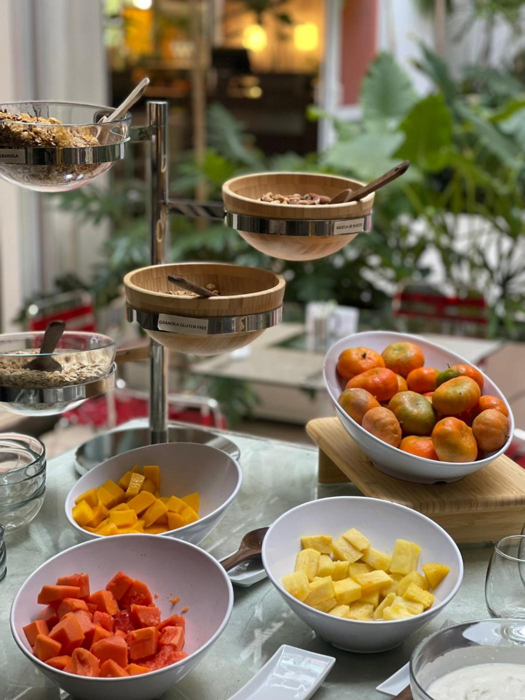 Guests can enjoy an American breakfast at the fancypatio which is decorated with tropical palm trees.