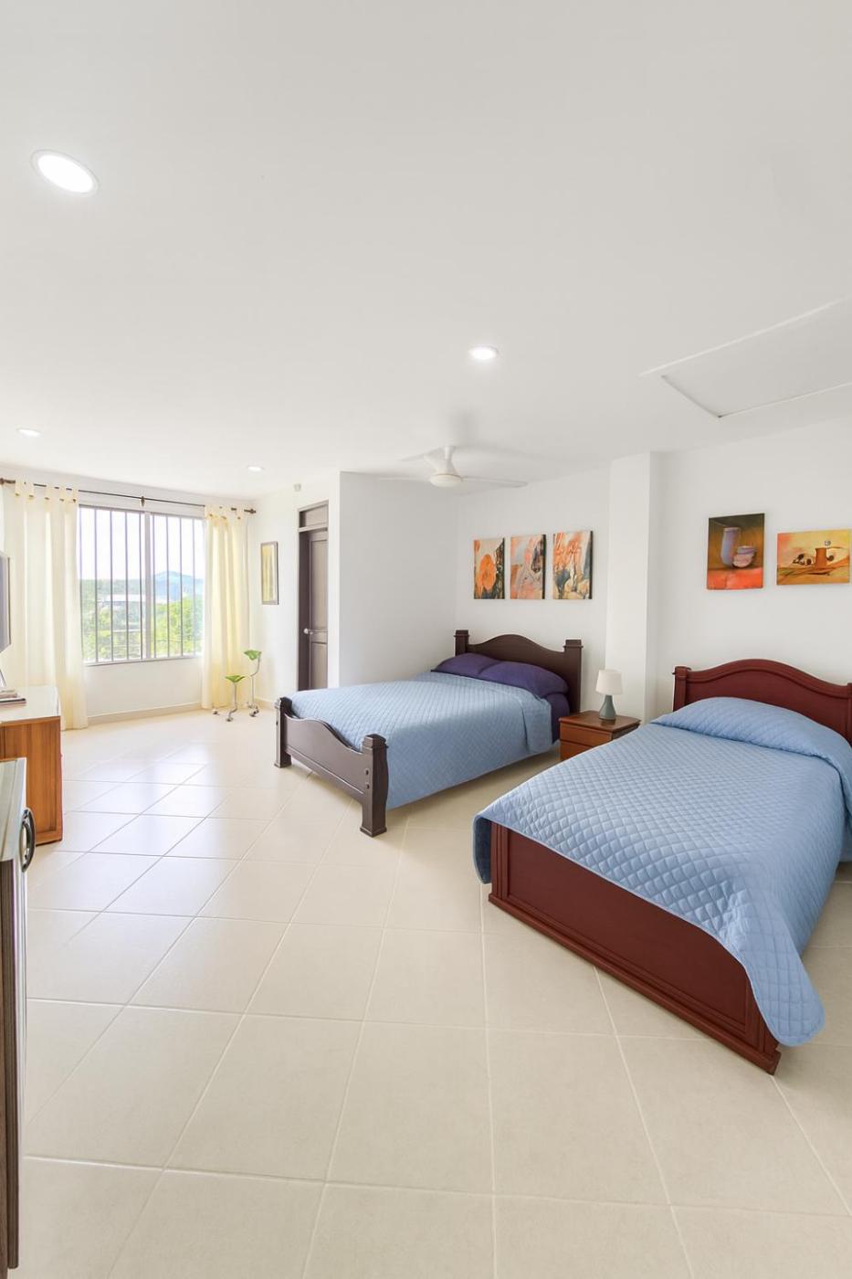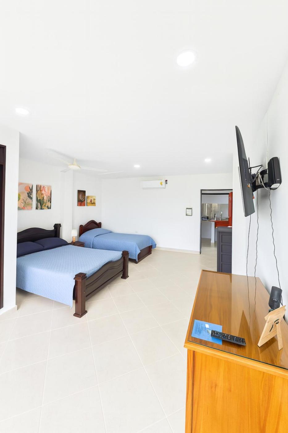 One-Bedroom Apartment. The apartments kitchen, which features a refrigerator and kitchenware, is available for cooking and storing food. The apartment offers air conditioning, a coffee machine, a tiled floor, a flat-screen TV, as well as city views. The unit offers 2 beds.
