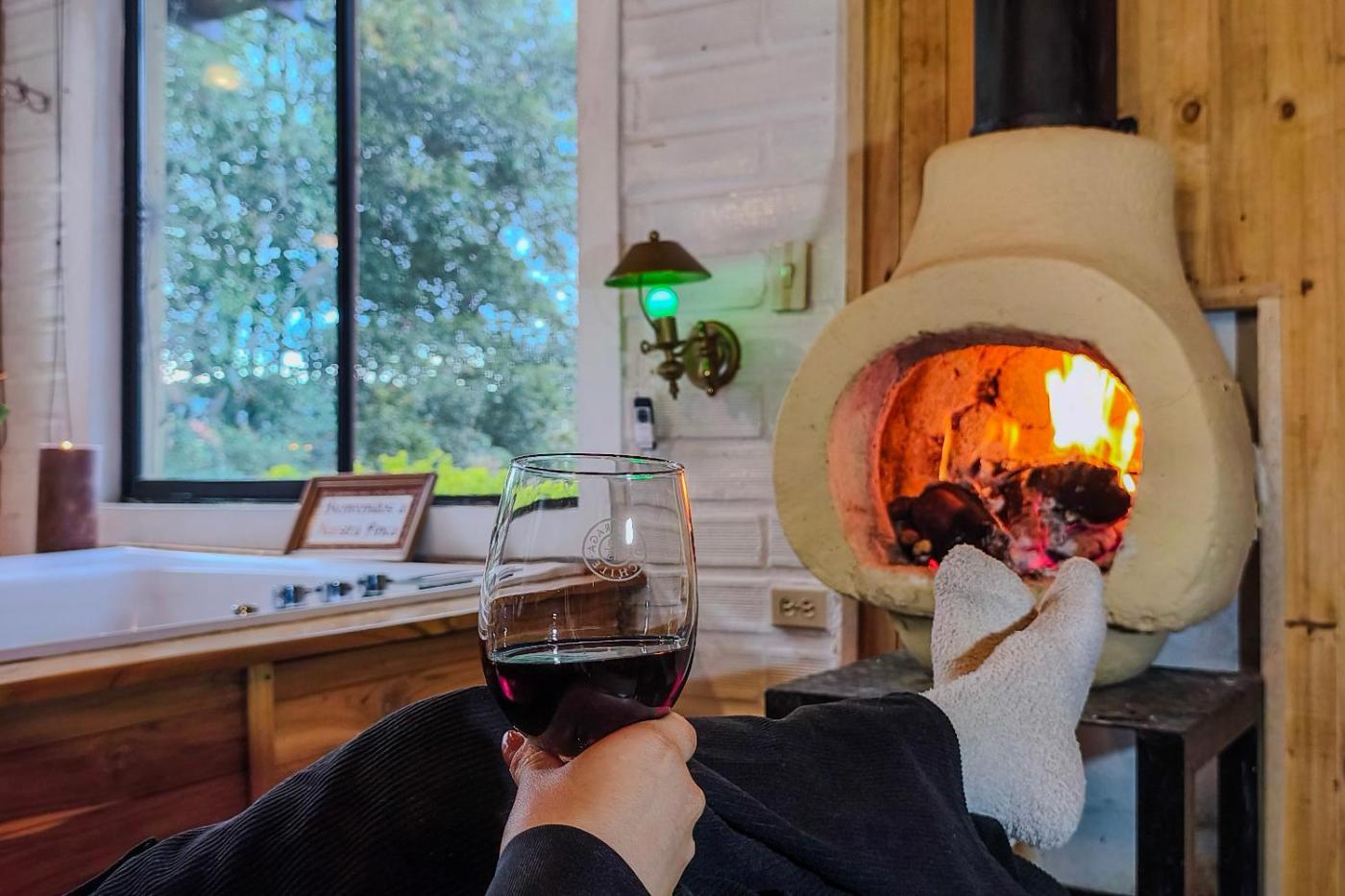 One-Bedroom Chalet. Guests will have a special experience as this chalet offers a hot tub, a spa bath and a fireplace. In the kitchen, guests will find a stovetop, a refrigerator, kitchenware and a microwave. The chalet features tiled floors, a seating area with a flat-screen TV, a private entrance, a tea and coffee maker as well as garden views. The unit offers 1 bed.