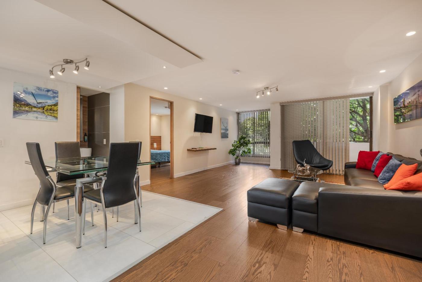 Deluxe One-Bedroom Apartment. This spacious apartment comes with 1 living room, 1 separate bedroom and 2 bathrooms with a shower and free toiletries. Meals can be prepared in the well-fitted kitchen, which features a stovetop, a refrigerator, kitchenware and an oven. This apartment is air-conditioned and has a seating area with a flat-screen TV, a washing machine, a coffee machine, a dining area, as well as a wardrobe. The unit has 1 bed. ;