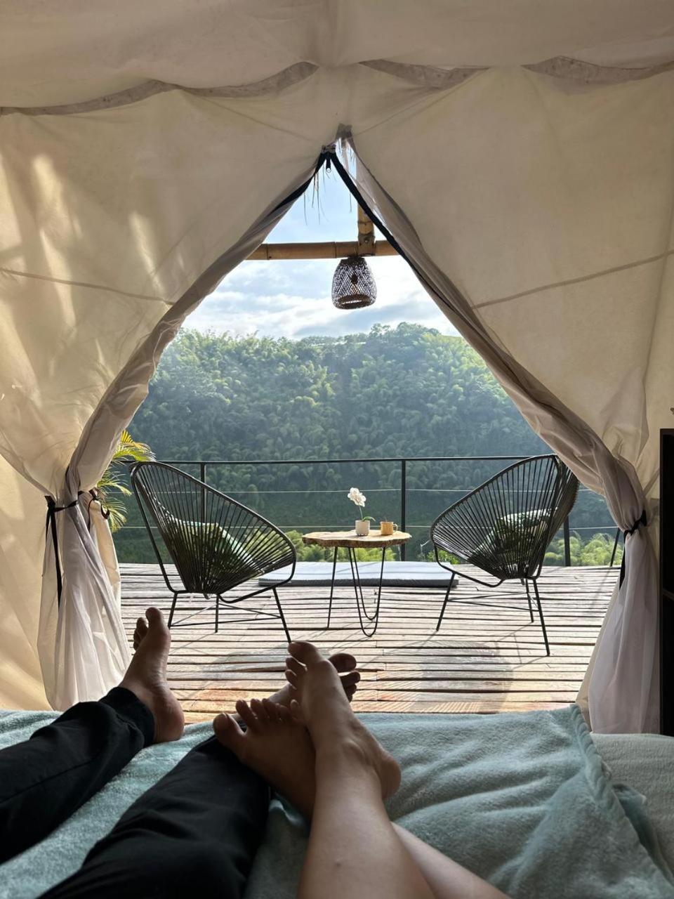 Glamping. Featuring free toiletries, this tent includes a private bathroom with a shower. The tent has a coffee machine, an outdoor dining area and garden views. The unit has 1 bed.