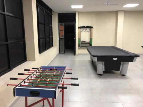 You can play billiards and table tennis at the apartment.
