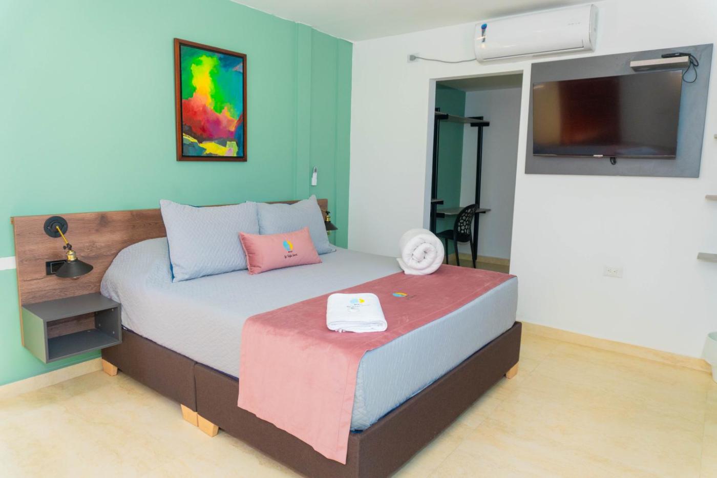 At the hotel,rooms are fitted with a desk. Complete with a private bathroom fitted with a shower and free toiletries,guest rooms at Hotel Galería La Vieja Sara have a flat-screen TV and air conditioning, and some rooms also offer a balcony.rooms feature a wardrobe.